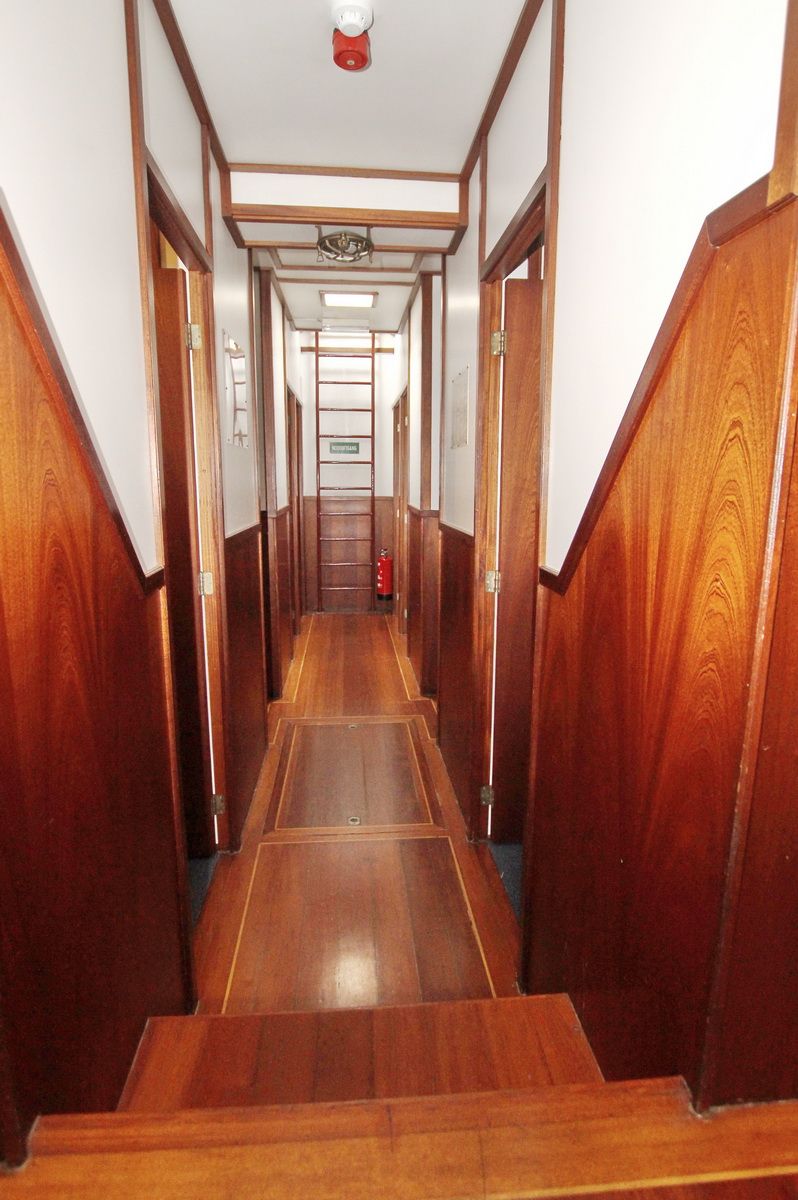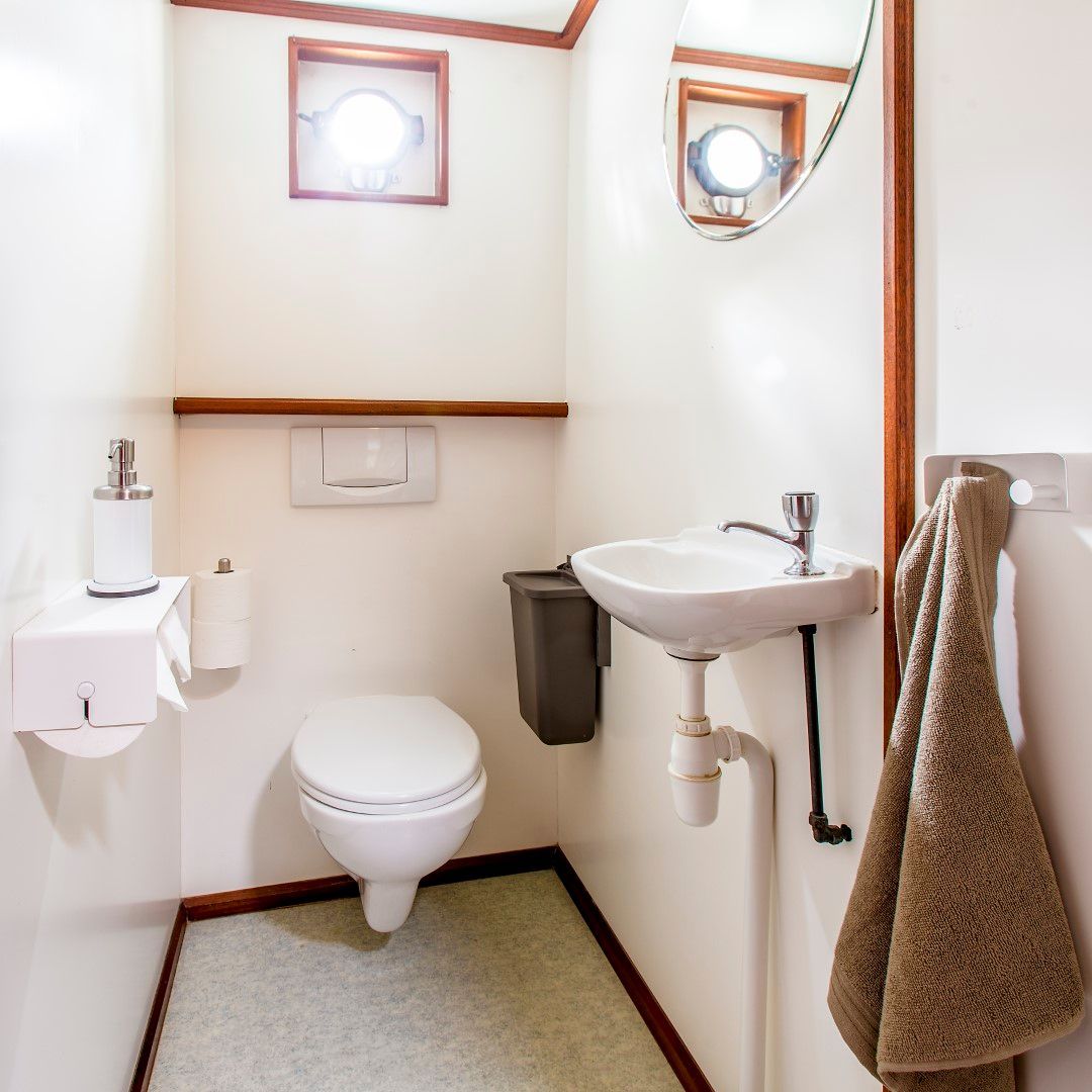 Voor en achter in het schip bevinden zich de hutten. Alle hutten beschikken over centrale verwarming en stromend water. De bedden zijn volledig opgemaakt inclusief dekbed. Je hoeft dus geen slaapzak meenemen. In totaal beschikt het schip over elf hutten. Zeven 2-persoonshutten en vier 4-persoonshutten.