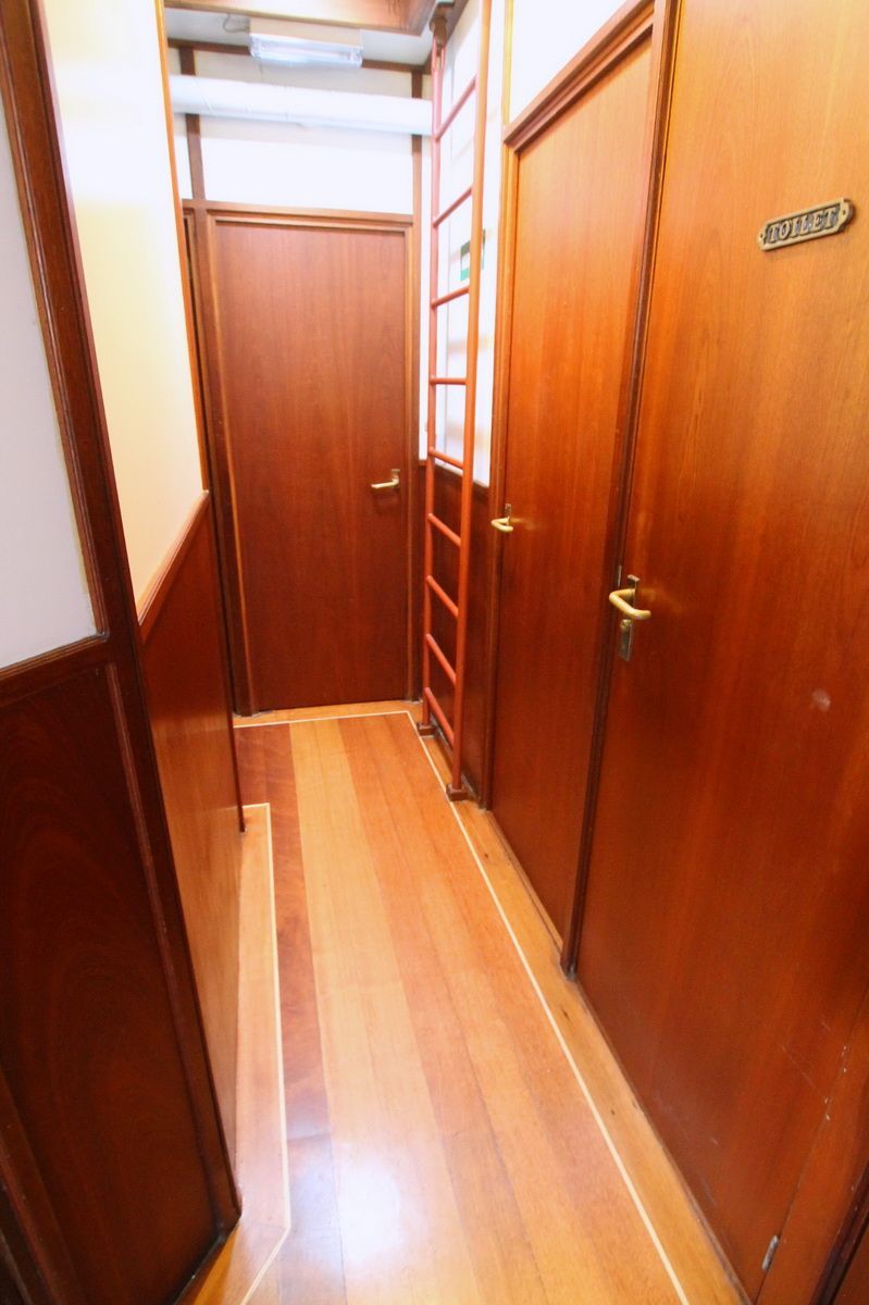 In het midden van het schip bevindt zich de grote salon met gezellige zithoeken. De salon is hoog en heeft een Engelse uitstraling. In één van de hoeken bevind zich een gezellig barretje . De salon grenst aan de goed uitgeruste kombuis. Aan dek bevindt zich het stuurhuis. Buiten het varen behoort het stuurhuis tot het privé gedeelte van de schipper. Maar tijdens het varen kun je hier -uit de wind- genieten en het zeilen meebeleven.